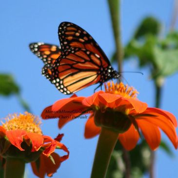 In late September, the migrating adult Monarch Butterflies found the "Pollinator Mound.' The Mexican Sunflowers were 8 feet tall with multiple stems and hundreds of fresh blossoms. It was exciting to watch. We observed 2 to 8 Monarchs going from flower to flower all day for a week.